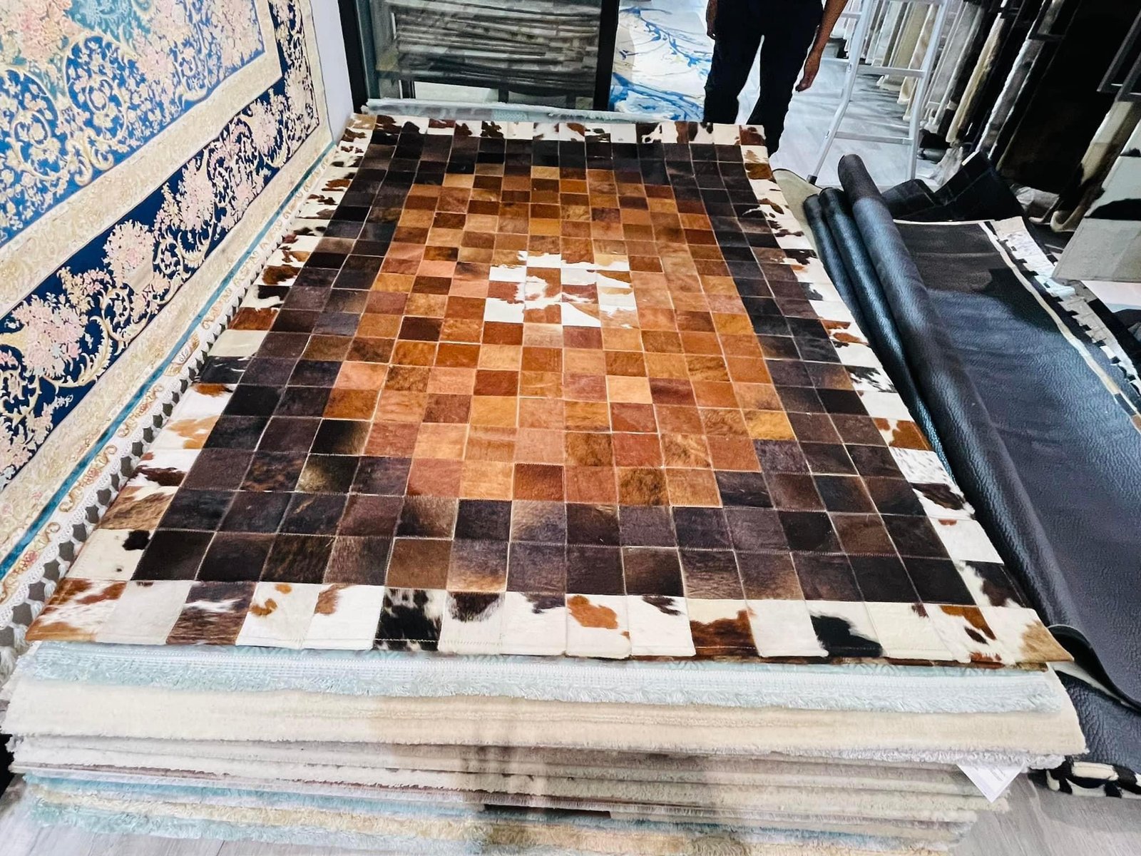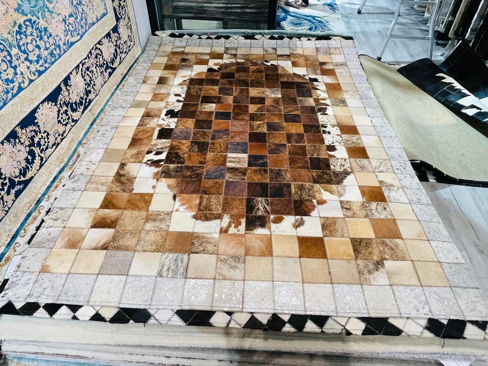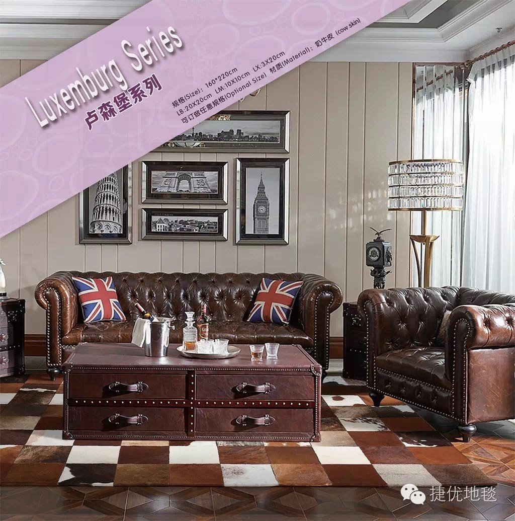 Với vẻ đẹp tuyệt đối, đẳng cấp và sang trọng, thảm da bò không chỉ nâng tầm không gian mà còn là phong cách phẩm vị cho gia chủ. Ưu thế với khả năng chống nước và khả năng chịu lửa, việc bảo quản và vệ sinh thảm chưa bao giờ dễ dàng đến thế, chỉ cần dùng khăn ẩm lau chùi nhẹ nhàng để giữ thảm luôn tươi mới. Jieyou tự hào giới thiệu thảm da bò cao cấp bền bỉ, kết hợp giữa chất liệu tự nhiên và kĩ thuật chế tinh xảo, mỗi tấm thảm được tạo ra đều là một tác phẩm nghệ thuật riêng biệt. Với chất liệu từ da bò Miến Điện dệt hoàn toàn thủ công và được xử lý chống ẩm và côn trùng. Vừa bền đẹp. Thích hợp cho phòng khách phòng học, treo tường.